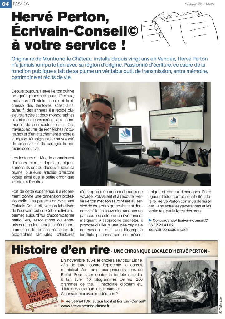 J’ai une appétence particulière pour l’Histoire (la vôtre, celle de votre entreprise ou ou celle du patrimoine), la transmission des valeurs et des souvenirs ainsi qu’un intérêt sur de nombreux sujets d’ordre général ou lié à l’insolite, l’inédit, le décalé.
